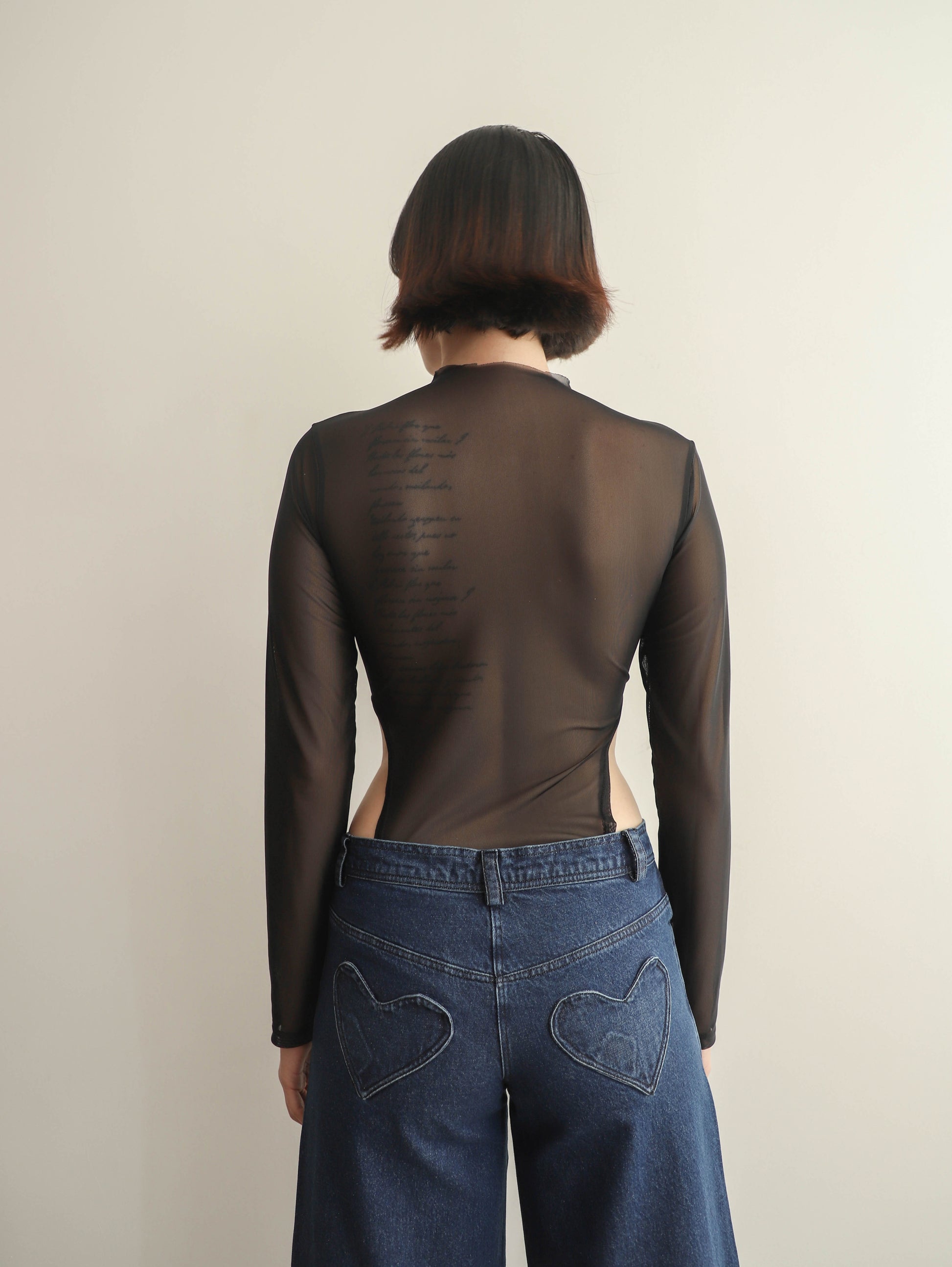 Body negro mesh, corte alto