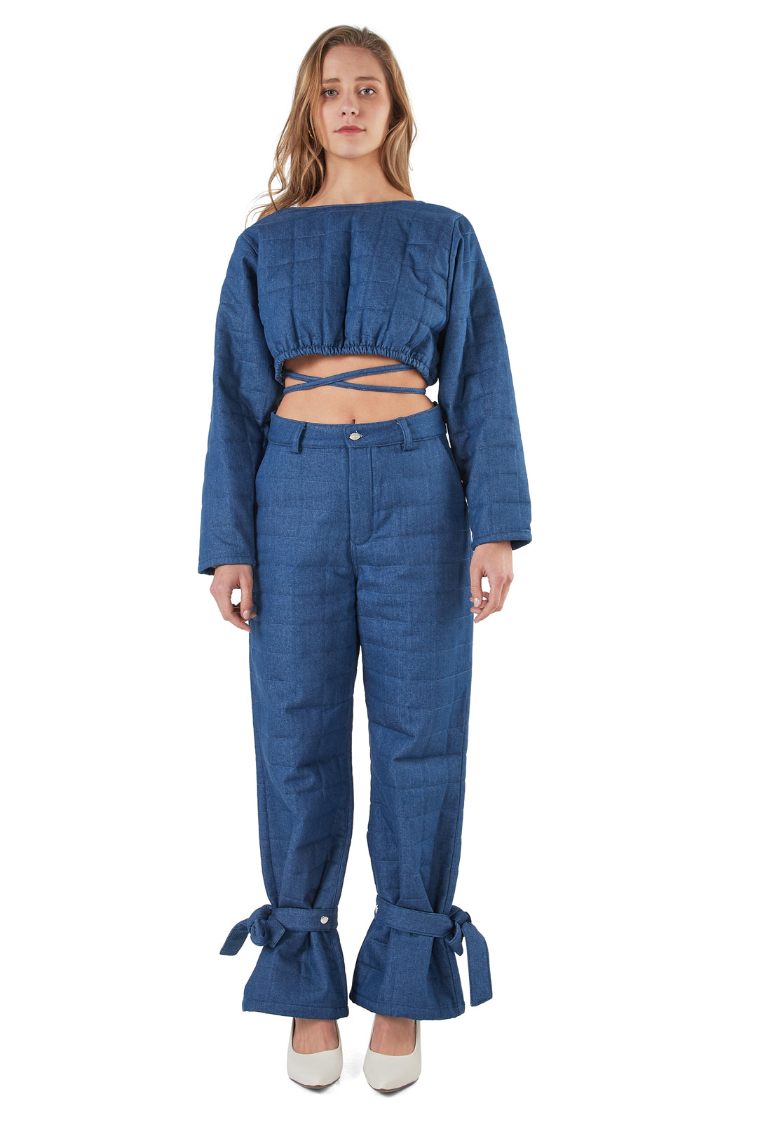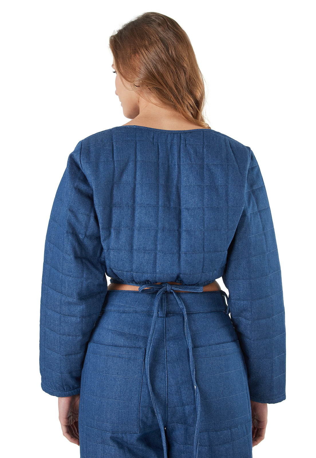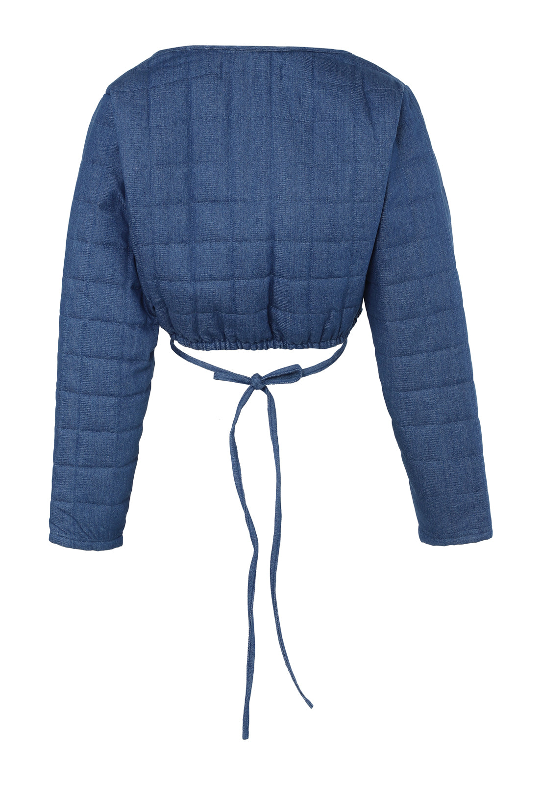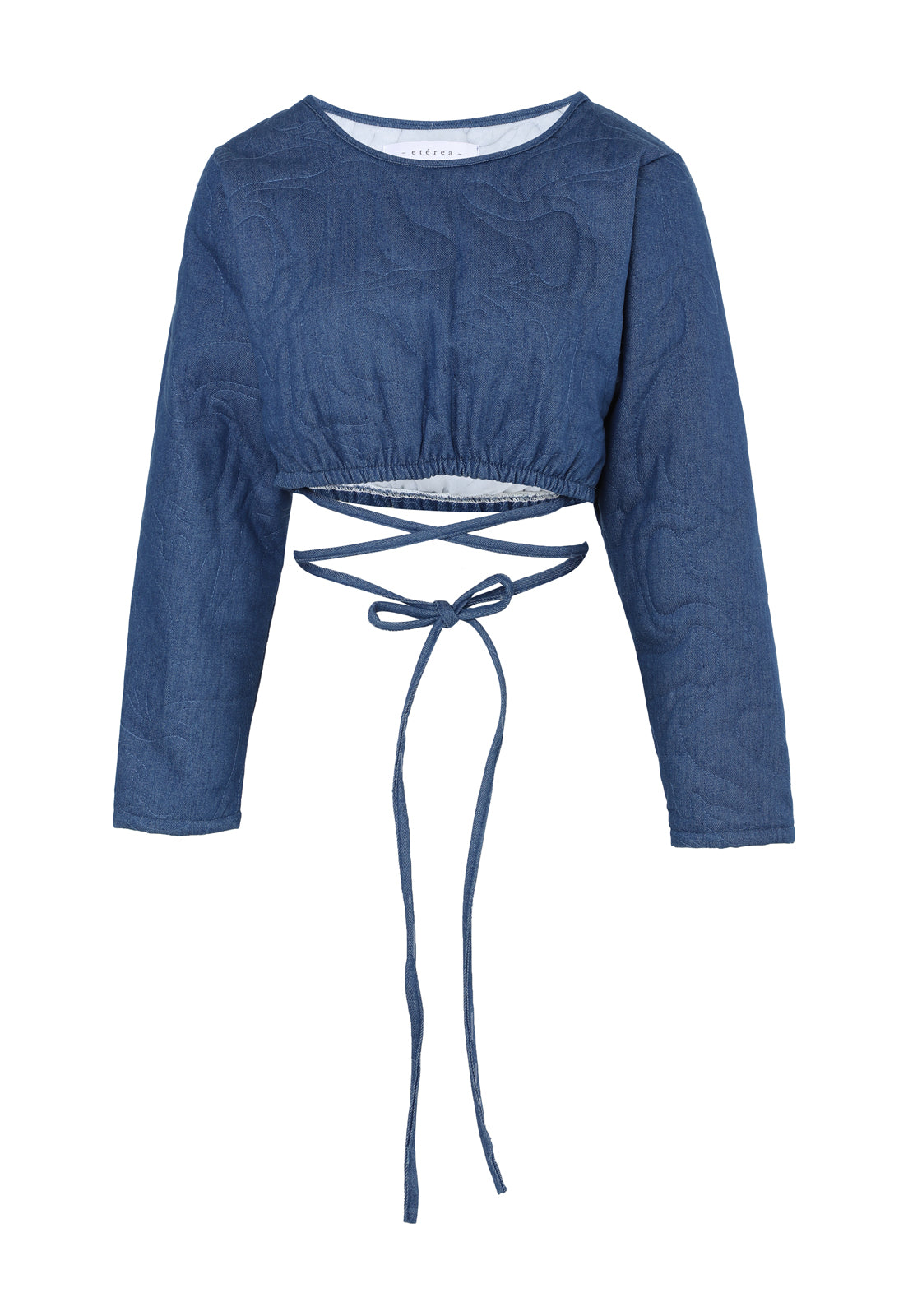 Camisa puffy bordada tipo cropped-top. Color azul.